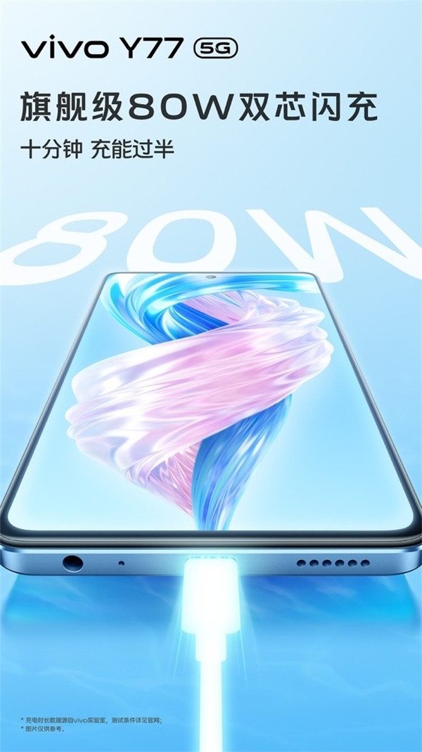 vivoY77最大的卖点就是搭载了旗舰级80W双芯充电。之前,双芯充电一直是旗舰级配置,此次出现在Y77上,一方面是旗舰级技术的下放,另一方面vivoY77也承担起80W双芯闪充普及者的角色,开启全民闪充新时代。80W双芯充电不仅可以让充电效率翻倍,充电速度甚至可以比肩100W单电芯,而且80W双芯充电温度更低。经过实测,vivoY77仅需10分钟就可以充至50%,31分钟即可充至100%。而电池方面,vivoY77搭载了4500mAh大电池,并采用智能省电技术,可持久续航一整天。充的快、用得久,vivoY77可以让重度手机用户彻底告别电量焦虑。