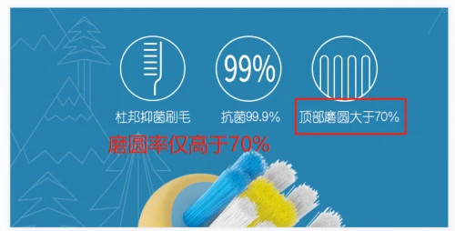 ️2.刷毛磨圆率高于80%。刷毛磨圆率非常重要,太低容易伤牙,成人磨圆率要求高于60%;儿童要求高于80%;越高对牙齿保护越好。