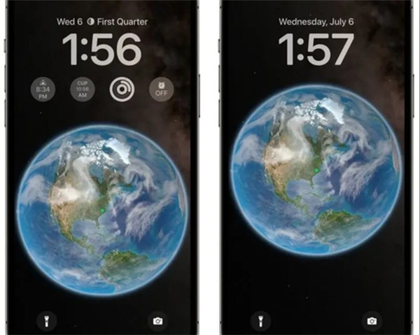 4、自定义锁屏界面,可修改时间的字体和颜色,锁屏时间有12种字体可选,而且还修复了在地球锁屏壁纸中小部件阻挡地球视野的问题。