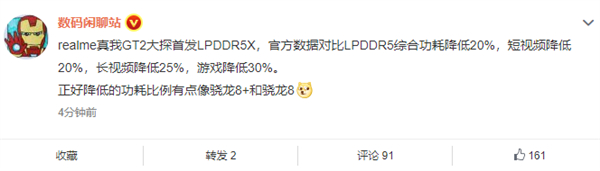 今日,据数码博主@数码闲聊站 爆料,realme GT2大师探索版将首发LPDDR5X,官方数据对比LPDDR5综合功耗降低20%,短视频降低20%,长视频降低25%,游戏降低30%。正好降低的功耗比例有点像骁龙8+和骁龙8。