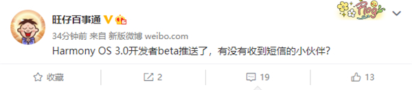 今日,数码博主@旺仔百事通 表示,HarmonyOS 3.0开发者Beta推送了。有多位博主反馈称,自己已经收到了鸿蒙3.0开发者申请通过的通知。