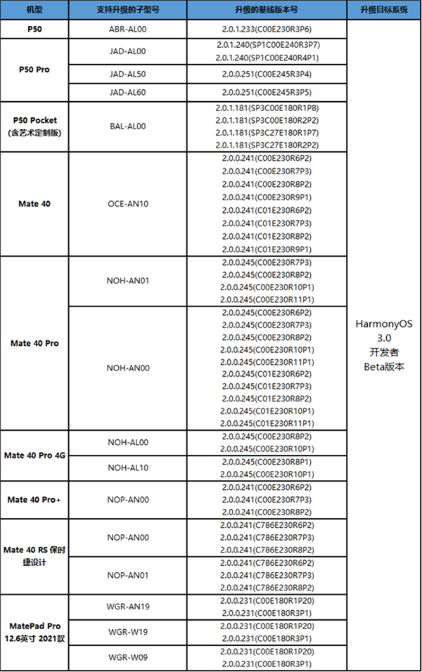 前不久,华为官方开启鸿蒙OS 3.0开发者Beta公测招募,参与此次公测的设备包括,华为P50、P50 Pro、P50 Pocket、Mate 40、Mate 40 Pro、Mate 40 Pro 4G、Mate 40 Pro+、Mate 40 RS保时捷设计、MatePad Pro 12.6英寸2021款。