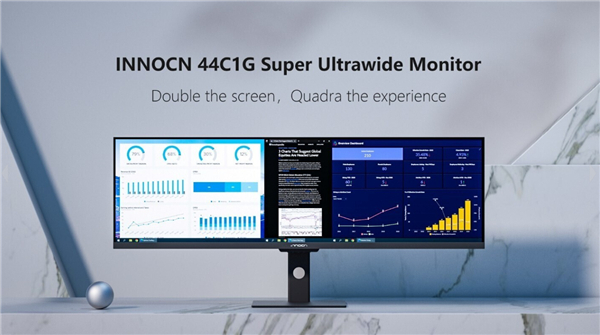 INNOCN 刚刚推出了一款 43.8 英寸 @ 32:9 的超宽屏显示器,它就是采用了 WFHD(3840×1080)IPS 面板、且支持 120Hz 刷新率的 44C1G 。与在桌面上摆放两台单独的 16:9 @ 1080p 显示器相比,INNOCN 44C1G 能够为你带来更加无缝的娱乐和办公体验,同时减少对宝贵桌面空间的占用。