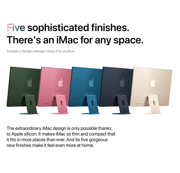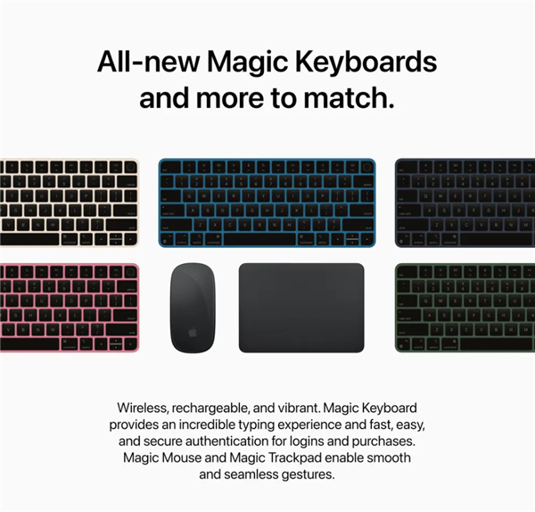 除了新的颜色选项和尺寸外,设计师还从 Studio Display 中汲取了美学线索。这意味着与 M1 iMac 上的白色边框不同,M2 iMac 概念设想了黑色边框。苹果表示,白色边框很容易与周围环境融为一体。