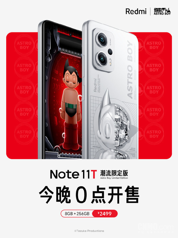 Note 11T潮流限定版是在Note 11T Pro+基础上打造而来的限量版机型,因此在外观方面是比较独特的。在正面,Note 11T潮流限定版打开可以看到阿童木开机动画、机械感图标和专属充电显示图标。而在背部,该机采用半透明机械形象和铂金浮雕工艺,精致而有趣。