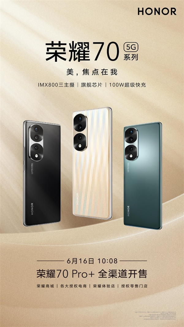 今日上午10:08,荣耀70 Pro+将于荣耀商城、各大授权电商以及零售门店正式开售,起售价4299元。