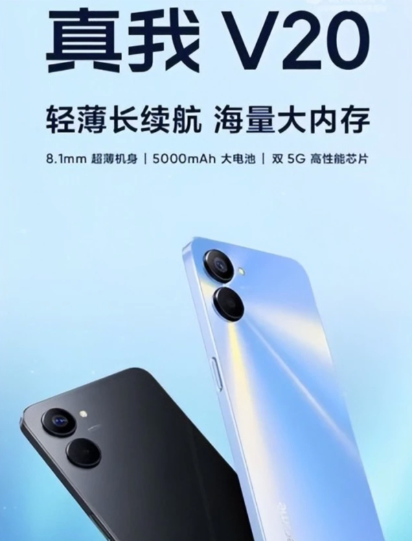 6月14日,真我realme发布了一款入门级5G新机——真我V20,新机主要面向线下销售,提供4GB+128GB和8GB+128GB两种版本,售价1099元起。据悉,该机此前已在线下渠道开售。