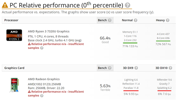 经查,在Userbenchmark中出现了名为锐龙3 7320U的芯片,乍一看,兴冲冲地以为是锐龙7000笔记本处理器,事实却并非如此。