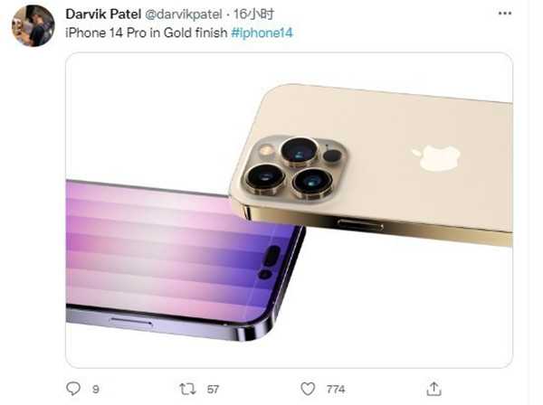 今天,设计师@Darvik Patel分享了iPhone 14 Pro金色版本和紫色版本的概念渲染图,渲染图的金色和紫色都比较淡雅,显得非常精致大方。