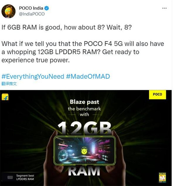 6 月 13 日消息,据 GSMArena 报道,小米 Poco 几天来一直在预热 Poco F4 5G 手机,该公司已经确认搭载骁龙 870 芯内存和 UFS 3.1 存储。