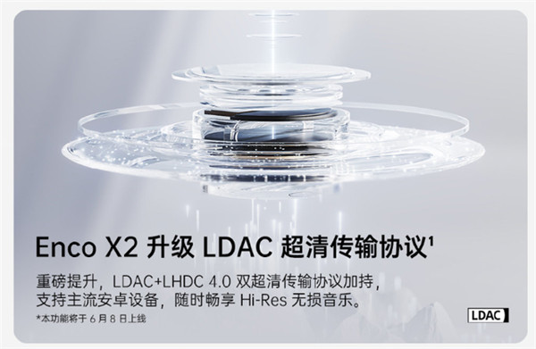 OPPO Enco X 也将于 6 月 16 日支持 LHDC 4.0 协议,最高码率提升至 900kbps。