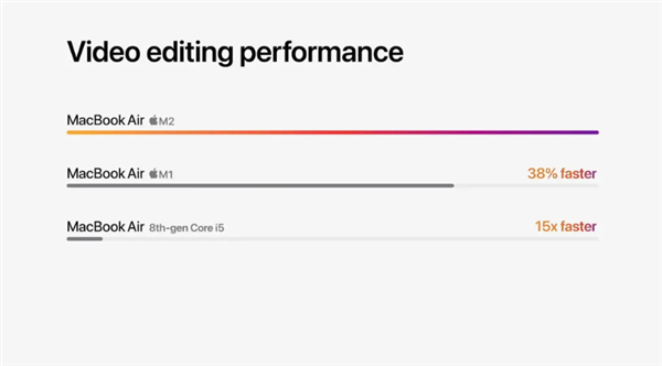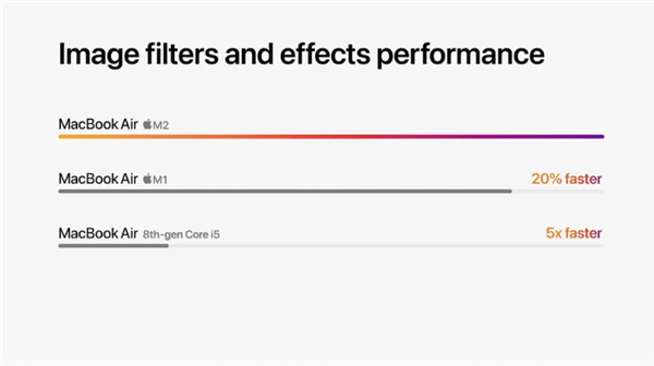全新的麦克风和扬声器具有波束成形麦克风和Atmos支持。比M1 Air快20%,在Photoshop滤镜方面比上一个Intel Air快4倍。