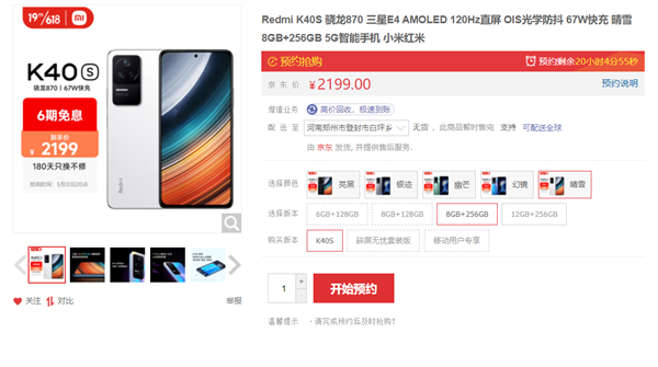 5月31日消息,昨日晚间,@Redmi红米手机 官微宣布推出Redmi K40S夏季新配色——晴雪,将于今晚20:00开售,售价2199元起(8GB+256GB)。