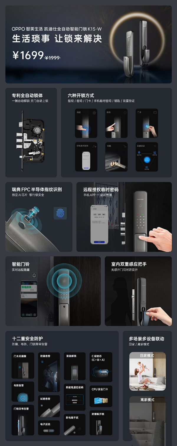 5月31日晚上20:00,OPPO首款全自动智能门锁——凯迪仕全自动智能门锁K15-W将正式开售。