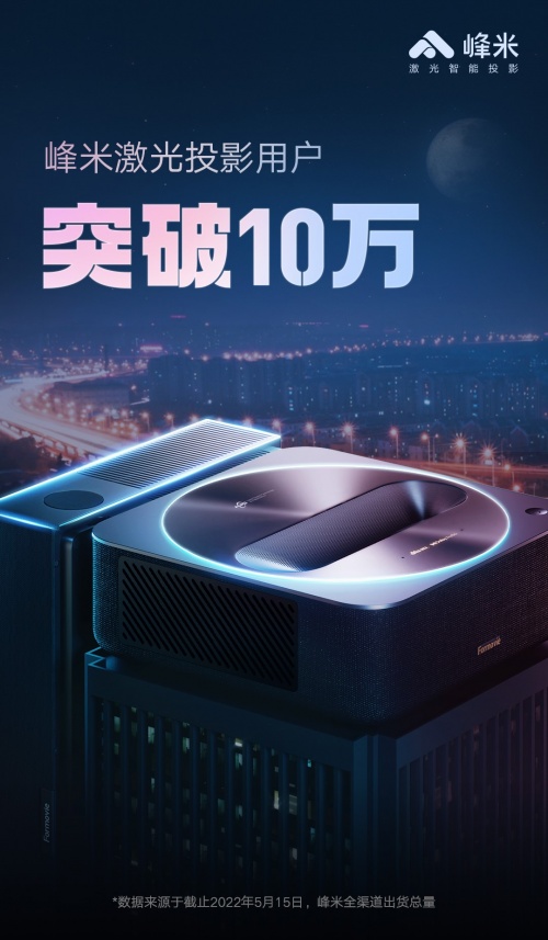 通过多年耕耘激光投影领域,峰米已经发布了多款优质且性价比十足的激光投影产品,也逐渐获得大众消费者的认可与喜爱,激光投影用户量突破10万便是最直观的体现。在未来,峰米将继续秉持“把影院搬回家”的企业使命,继续探索激光微投与激光电视的更多可能,为消费者打造独具品牌特色的大屏观影体验,加速推动家用激光投影的普及化时代。