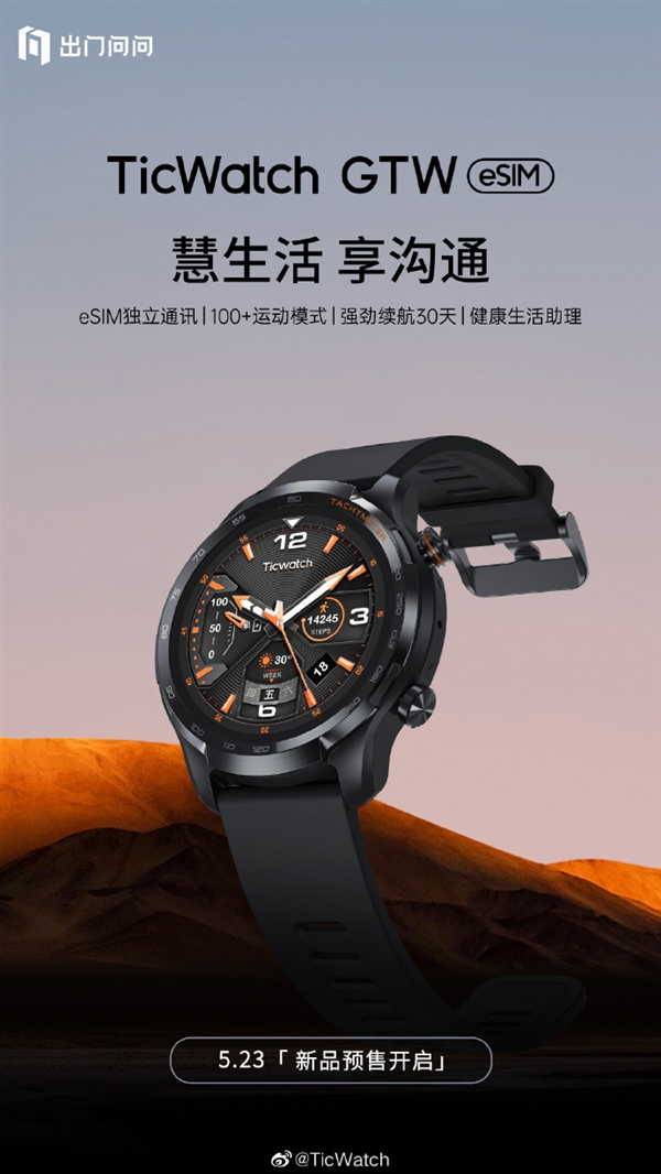 近日,出门问问推出了全新千元级4G通话手表TicWatch GTW eSIM,现已正式开启预售,价格为999元。