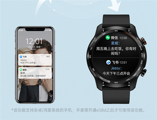 这款手表支持eSIM独立通话功能。不论是户外晨跑,还是下楼遛狗、取快递、拿外卖,即使不带手机,也能接打电话,保持在线。