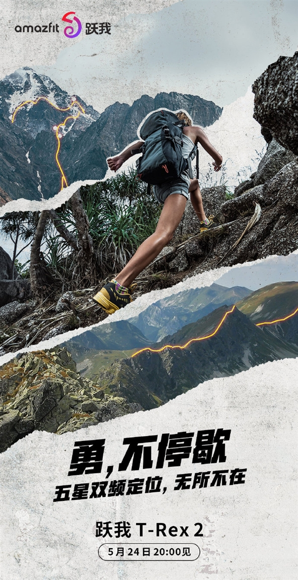 5月23日,华米官宣新一代T-Rex 2,将于明天晚上20点发布,主打卖点是“全球五星双频定位”,相比T-Rex的双星定位有了明显提升,即便是T-Rex Pro,也仅支持四星。