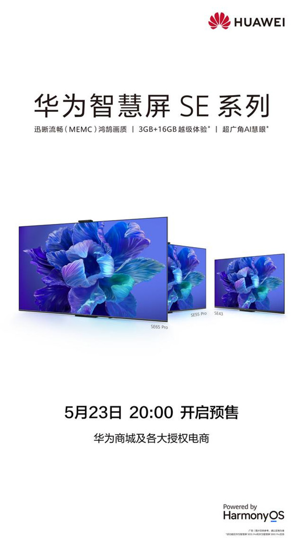 5 月 23 日消息,华为新款智慧屏 SE 系列于 4 月 28 日发布,包括 SE43、SE55、SE65 以及 SE55 Pro、SE65 Pro 五款,今日 20:00 开启预售,将于 5 月 31 日正式开售。