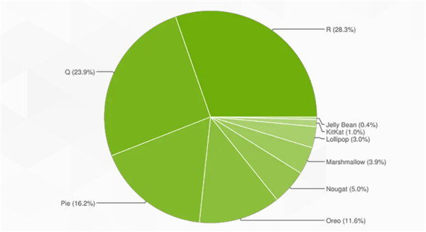 Google 今天更新了 Android 版本分布饼图,只不过依然没有关于 Android 12 采用率的细节。根据 2022 年的新分布饼图,Android 11 的占比从 24.2% 上升至 28.3%,已经成为最大的 Android 版本。