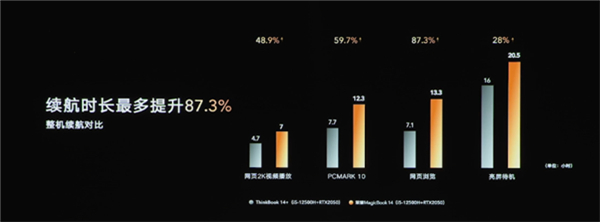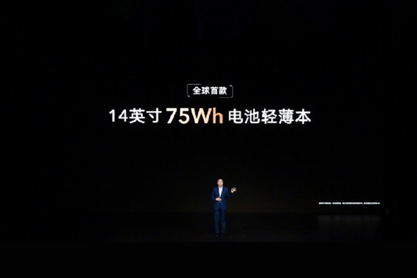 荣耀赵明强调,它是业界首款搭载75Wh大电池的14寸轻薄本产品,亮屏待机最长为20小时,本地1080P视频播放时长17小时,网页浏览时长为13小时。