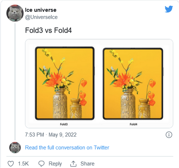 相比上一代Galaxy Z Fold3的屏下摄像技术,Galaxy Z Fold4的前置摄像头隐藏效果会更好,自拍素质会进一步提升。