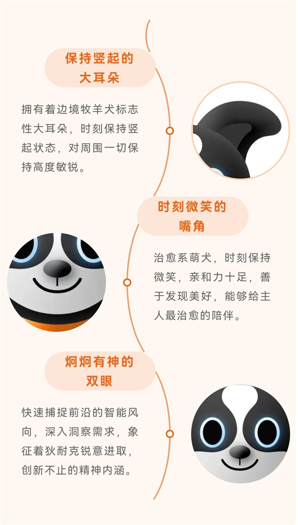 小狄的形象来源于世界上拥有犬类最高智商的边境牧羊犬,象征着智慧、忠厚与可靠。