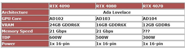 具体来说,RTX 4080基于AD103核心,配16GB GDDR6X显存,显存速度21Gbps,整卡功耗500W,FE公版配单16pin外接供电。
