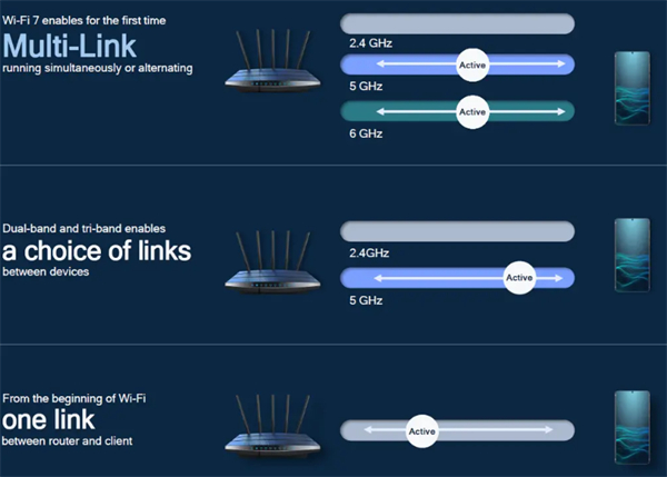理论上,这些方面允许高达约46Gbps的无线吞吐量。802.11be还旨在通过包括低延迟通信的功能,如多链路操作(MLO),使Wi-Fi用于实时应用。这允许客户端和接入点同时在可能属于不同频段的多个通道上进行通信。