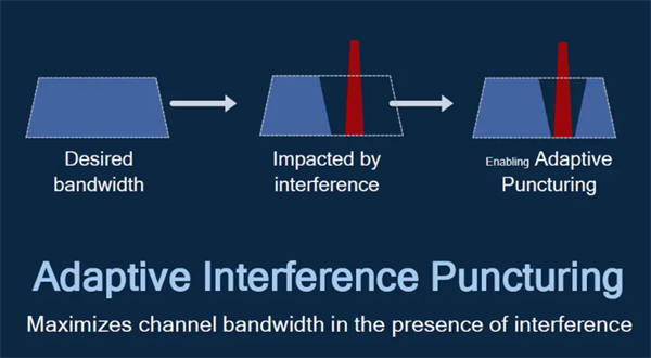 802.11be规范还允许在干扰严重的环境下有更好的性能,允许自适应穿刺--所需的信道不一定是连续的。这改进了作为802.11ax规范的一部分已经提供的前导信息穿刺功能。