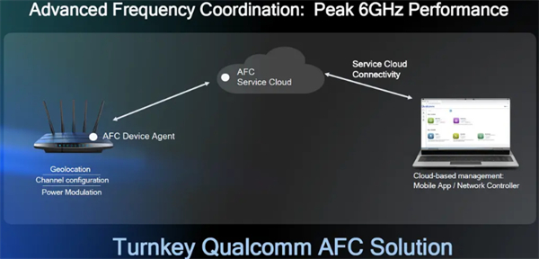 使用自动频率协调(AFC)处理与同一频谱的非Wi-Fi用户的干扰和共存。与开放AFC计划(博通是该计划的一部分)不同,高通公司选择为其客户提供自己的密钥解决方案。