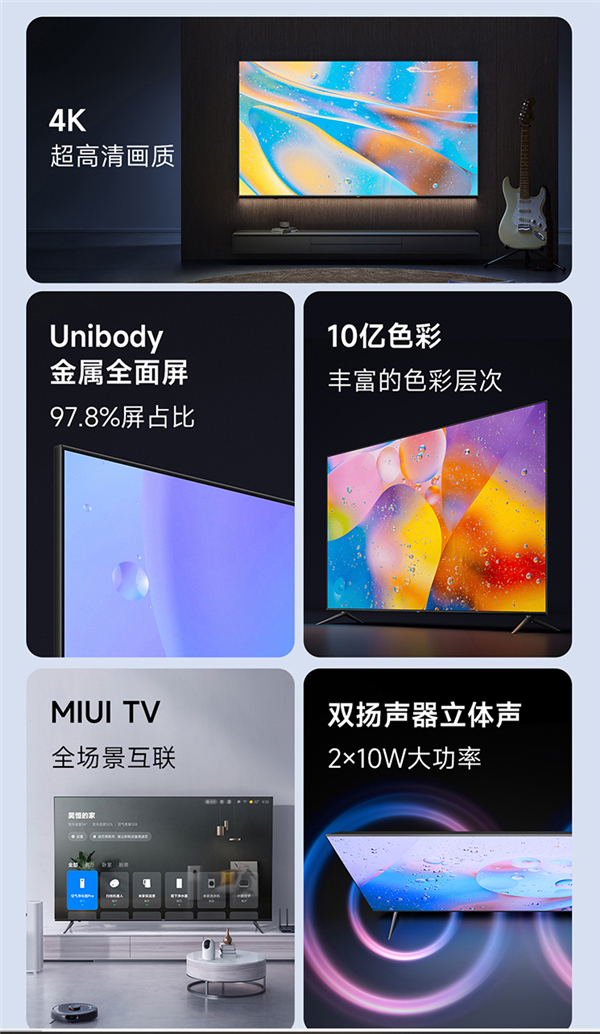 今天,小米还推出了一款Redmi A58 2022款,配备了少见的58英寸大屏,分辨率为3840*2160,支持10亿原色显示,95.4%超高屏占比带来更沉浸的视觉体验,首发价1599元。