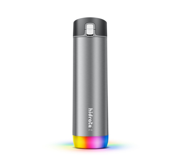 根据官网的页面,这款智能保温杯名叫“HidrateSpark STEEL”,目前已经正式开售,官方售价568元。我们可以看到,这款保温杯在设计上有点独特。其有银灰和深黑两种配色版本,其中银灰色版本的杯盖和杯身有着比较明显的颜色差别,而最引人注目的是,这款保温杯的杯底居然是五颜六色的,配合上以深色为主的杯身,视觉上确实让人印象深刻。