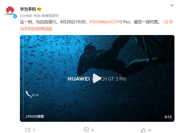 4 月 25 日消息,华为官宣将于 4 月 28 日的折叠旗舰及全场景新品发布会推出 Watch GT 3 Pro 手表,口号为“这一刻,向自由潜行”。
