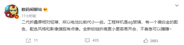 根据知名爆料博主@数码闲聊站爆料的消息,️Mix Fold 2将会采用全新的铰链设计,使手机内屏的折痕更小,也更易开合。