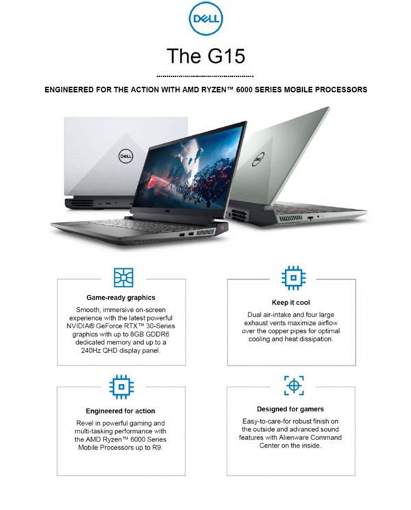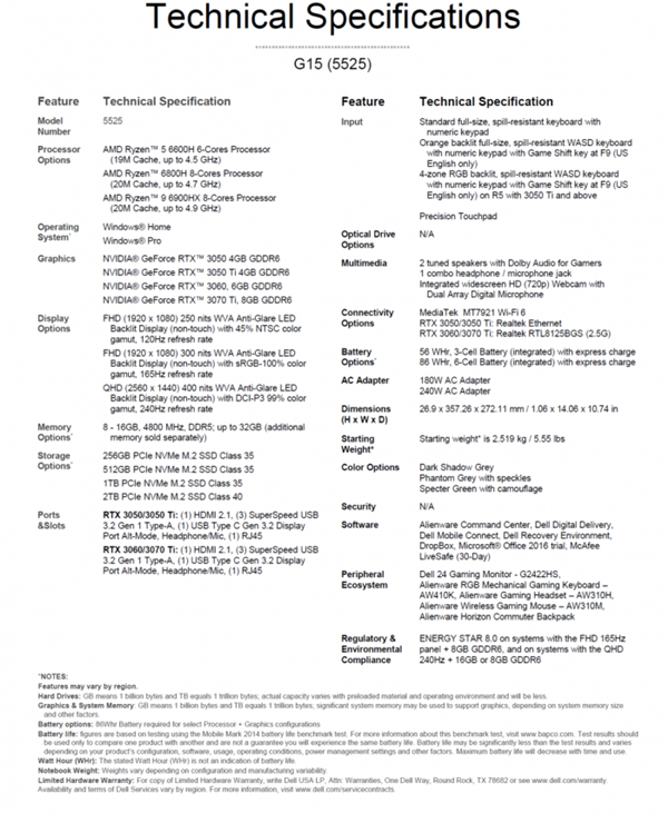 其次是戴尔 G15(5525)锐龙版高端笔记本电脑,该系列机型采用了锐龙 6000H 系列标压移动处理器,最高款 R9-6900HX 。