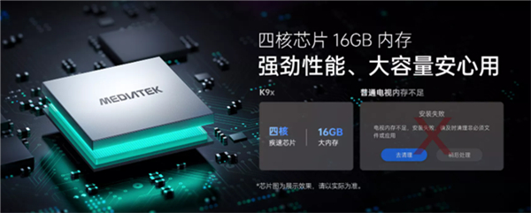 核心方面,OPPO K9x搭载了联发科4核处理器,配备2GB内存和16GB存储空间,支持双频Wi-Fi。