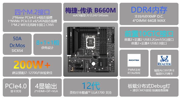 Intel 12代酷睿处理器发售后,口碑和销量都有着不错的表现。所谓好马配好鞍,打算装机的朋友,不妨来看看梅捷已发售的传承B660M主板。