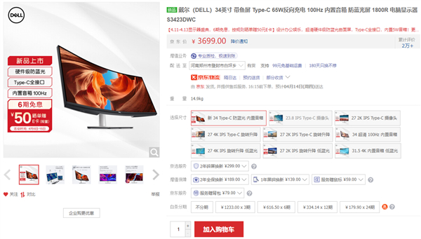 前不久,戴尔发布了新款34英寸曲面带鱼屏显示器S3423DWC,拥有3440*1440 分辨率,100Hz 刷新率。
