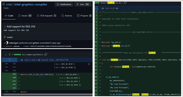 不过 Coelacanth's Dream 在 Github 上挖掘英特尔图形编译器代码时发现了第 3 个 ASIC,被称为“ACM-G12”。这种硅片的数字运算机器数量正好是 DG2-512 的一半,具有 256 个执行单元(EU),或 16 个 Xe 核心,相当于 2048 个统一着色器--是 DG2-128 的两倍,但是是 DG2-512 的一半。