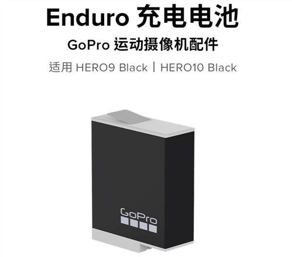 今年1月,GoPro还推出了全新一代超强续航电池“小白”,采用革新性技术,容量依然是1720mAh,但能够显著延长HERO10Black或HERO9 Black在常温条件下的录制时间高达40%。低至-10℃的环境中依然可以录制4K/60fps视频长达76分钟,摆脱续航焦虑。