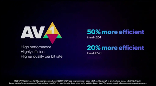 AV1 是一个非常高效、开源、免版权费的视频编解码器,和 HEVC(H.265)和 AVC(H.264)等竞争。在流媒体和视频平台加速整合 AV1 的同时,英特尔也迅速做出反应,成为首个支持 AV1 视频编码格式的 GPU 硬件供应商,在其最新的 ARC GPU 上完全支持 AV1。