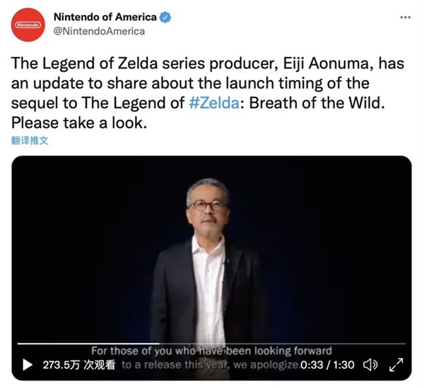 任天堂游戏制作人青沼英二宣布,《塞尔达传说:旷野之息 2》将延期到2023年春季发售。青沼英二表示,为了让游戏体验更加独特且难忘,整个开发团队正在努力工作,这还需要更长时间,请大家继续等待。