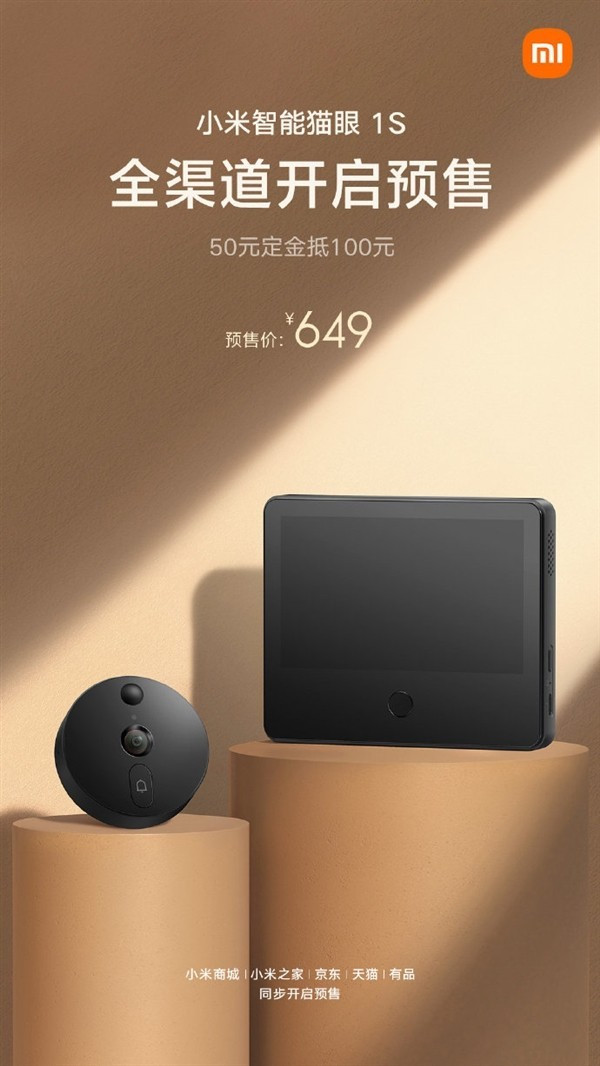 今日消息,小米智能猫眼 1S发布,其采用5英寸IPS液晶屏,钢化玻璃为全贴合工艺,而且还配有1080P摄像头,F2.0大光圈,可以带来更大进光量,而且支持门外160度广角镜头,视野也比较开阔。