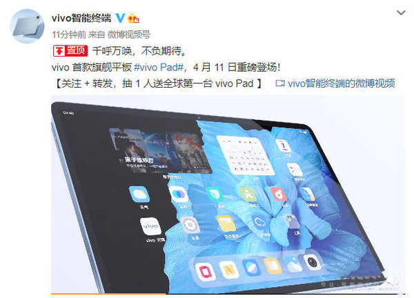日前,vivo正式官宣了其首款折叠屏手机——vivo X Fold,根据官宣,该机将于4月11日正式发布。不少爆料显示,vivo平板vivo Pad也将会在这场发布会上同步亮相,不过爆料归爆料,官方一直未证实该消息。直到今天(3月29日),vivo正式官宣,vivo首款旗舰平板vivo Pad将于4月11日正式登场!