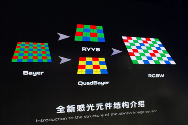 可以看出,索尼IMX886最大的亮点就在于RGBW的排列方式,引入了一个白色像素的区域来提供一个独立的灰度感应区域,提升了传感器的灵敏度,不过也存在传感器分辨率更低的缺点,这方面可能会通过AI影像算法来加以弥补。早在2026年的时候,vivo就已官宣将推出会RGBW阵列传感器。并且宣称RGBW像素排列的感光度提升160% 的同时,也不会带来偏色问题。