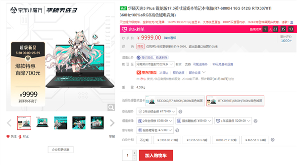 现在,️华硕天选3又加推了一个新版本,配备锐龙7 6800H处理器、满血RTX 3060显卡、16GB内存、512GB SSD、1080p/144Hz高刷屏,预售秒杀的价格只需7499元,3月29日预售,4月6日正式开卖。