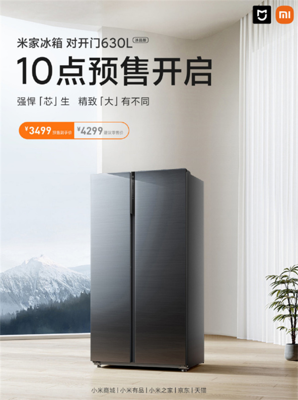 3 月 25 日消息,小米方面今日宣布,米家冰箱对开门 630L 冰晶版来了!到手价 3499 元,预售今日正式开启!