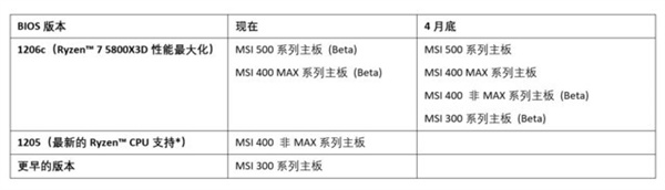 微星已为旗下多款500 和 400 系列主板发布了全新的 AMD AGESA COMBO PI V2 1.2.0.6c BIOS。 AGESA 1.2.0.6c 的目的不仅是为了更好的兼容性,也是为了最大化 AMD Ryzen™ 7 5800X3D 的性能。对于较旧的 300 系列主板,微星将在 4 月底之前发布 AGESA COMBO PI V2 1.2.0.6c beta BIOS。