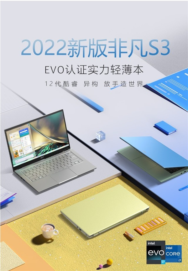 宏碁 (Acer) 现已上架2022款非凡S3笔记本电脑,该机通过英特尔 Evo认证,搭载英特尔12 代酷睿 i5-1240P处理器(12C16T),辅以16G+512G存储和IrisXe核显。该机还标配16GB LPDDR4X 4266MHz内存以及PCle4.0 SSD,还预留了两个M.2硬盘位,配有FHD全高清摄像头,提供AI语音降噪,电源指纹二合一、三档背光设计和转轴翘臀设计。
